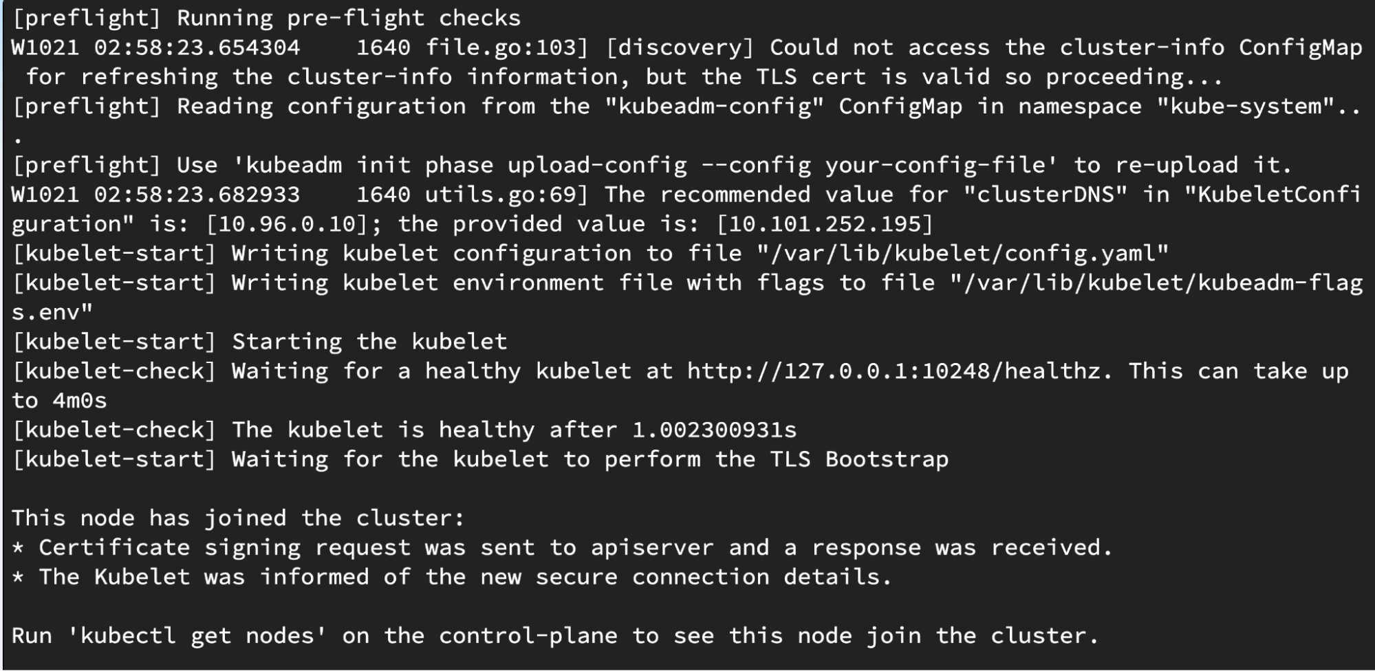 On VM node-02 (and any additional worker nodes), run the printed join command. E.g.: