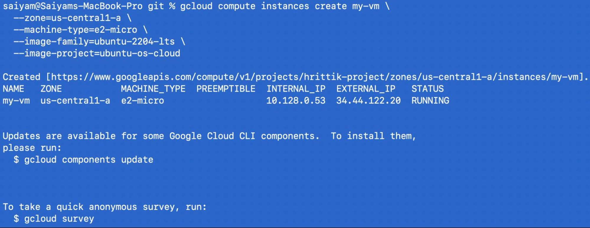 $ gcloud compute instances create my-vm \